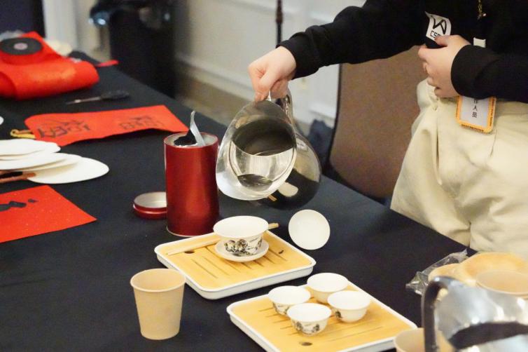 筆墨紙硯前,學(xué)生們書春聯(lián)、繪福字,一橫一豎皆是文化傳承。清茶裊裊間,學(xué)生們品佳茗、話家常,笑語(yǔ)與茶香共飄散。傳統(tǒng)游戲區(qū)的環(huán)節(jié)也趣味紛呈。