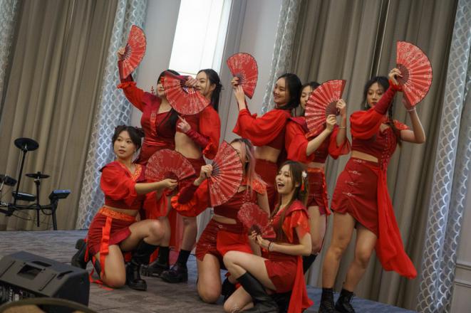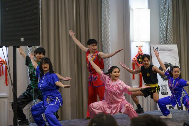 文藝演出環(huán)節(jié)成為學(xué)生們綻放青春風(fēng)采和才華的舞臺(tái)。“不靠譜樂隊(duì)”以一曲眾人耳熟能詳?shù)摹兜鞠恪罚瑔酒鹑珗?chǎng)溫暖共鳴;脫口秀以輕松幽默的視角觀照留學(xué)生活,中西文化碰撞的趣聞?shì)W事引發(fā)全場(chǎng)陣陣笑聲;《一萬(wàn)次悲傷》唱出了留學(xué)時(shí)光里那些靜默的堅(jiān)持,《勇氣》清澈堅(jiān)定,《不該》深情如詩(shī);《一半一半》則以深情的演唱打動(dòng)人心,兩位歌手用充滿張力的嗓音唱出年輕人的遺憾與成長(zhǎng);武術(shù)表演剛?cè)嵯酀?jì),一招一式皆是中國(guó)千年氣韻的當(dāng)代顯影;《寄明月》國(guó)風(fēng)團(tuán)舞歡快登場(chǎng),舞者執(zhí)扇著紅,步伐輕靈躍動(dòng),旋轉(zhuǎn)跳躍間盡顯朝氣;川劇變臉壓軸亮相,瞬息萬(wàn)變,精妙絕倫,引得全場(chǎng)驚嘆喝彩。