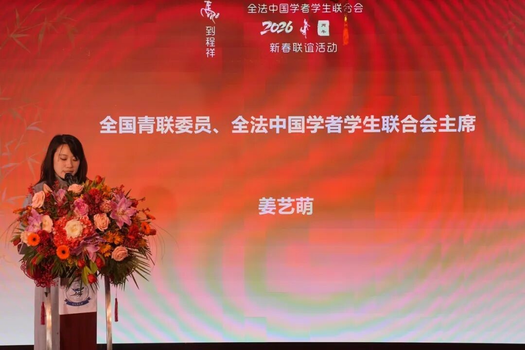 全法中國學(xué)聯(lián)主席姜藝萌在致歡迎辭時表示,2025年,全法中國學(xué)聯(lián)緊緊圍繞“服務(wù)學(xué)子、凝聚力量”工作主線,持續(xù)開展系列活動,逐步構(gòu)建起覆蓋學(xué)習(xí)、生活與發(fā)展的多元化服務(wù)平臺。2026年是全法中國學(xué)聯(lián)成立四十周年。新的一年愿傳承優(yōu)良傳統(tǒng),汲取寶貴經(jīng)驗(yàn),與廣大留法學(xué)子攜手同行,在海外學(xué)習(xí)生活與個人發(fā)展道路上相互支持、共同成長。