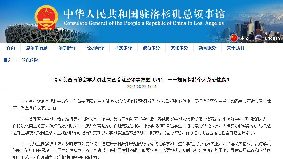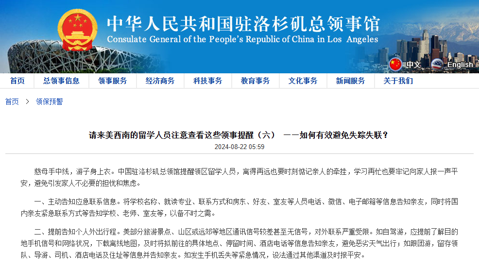 駐紐約總領(lǐng)事館提醒在美留學(xué)生避免失蹤失聯(lián)