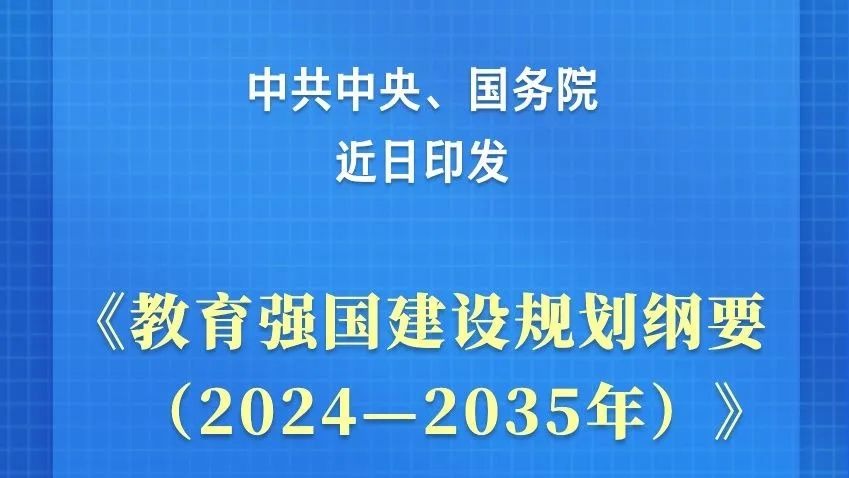 近日,中共中央、國務(wù)院印發(fā)了《教育強(qiáng)國建設(shè)規(guī)劃綱要(2024-2035年)》,并發(fā)出通知,要求各地區(qū)各部門結(jié)合實(shí)際認(rèn)真貫徹落實(shí)。