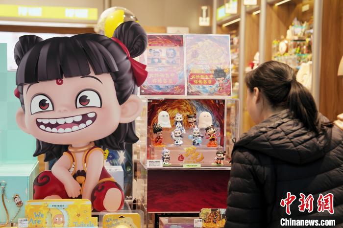 3月5日,北京一商鋪內(nèi)的電影《哪吒2》系列周邊商品吸引消費者。當(dāng)日,2025年政府工作報告提出,今年將實施提振消費專項行動。 中新社記者 張祥毅 攝