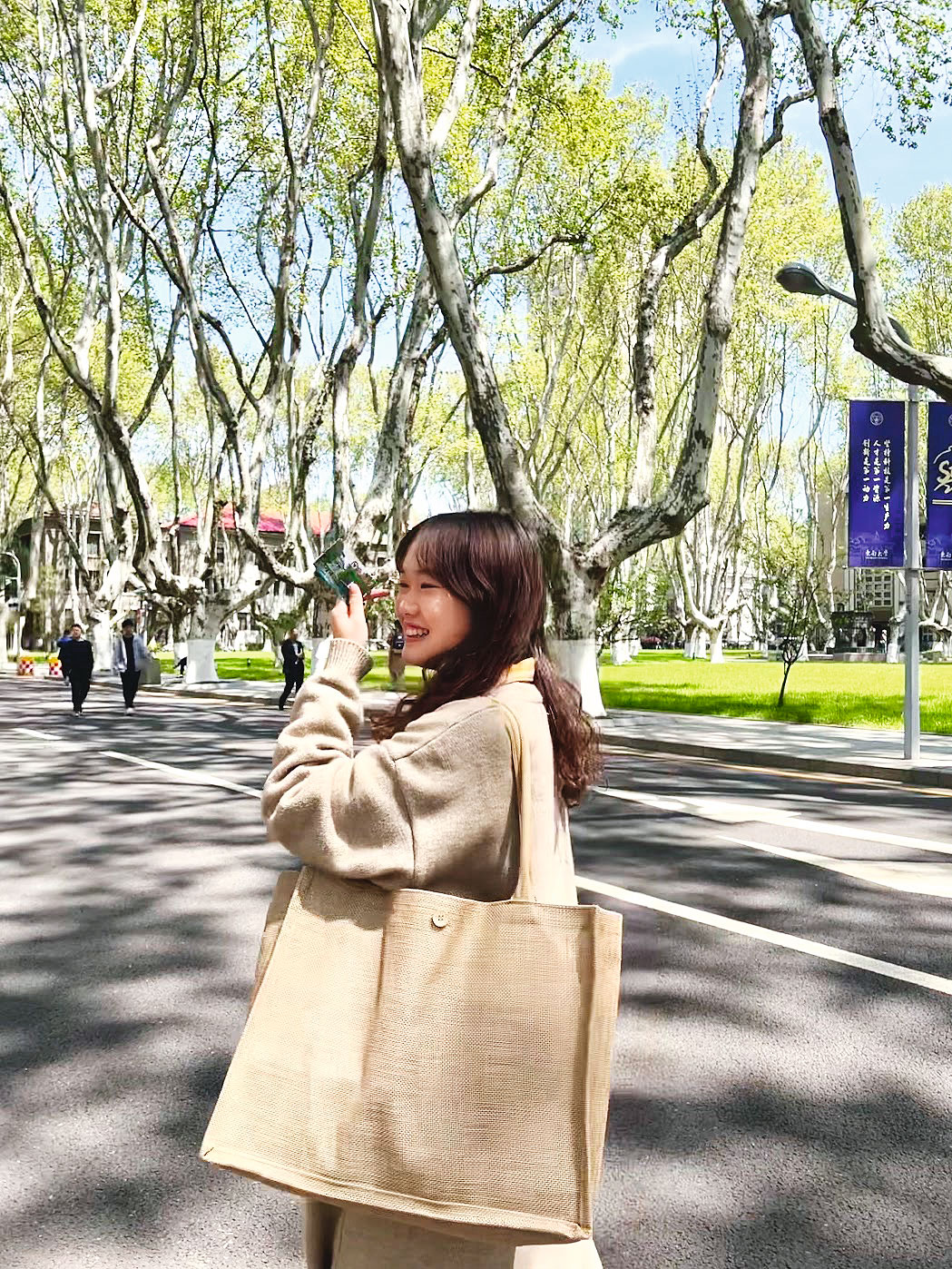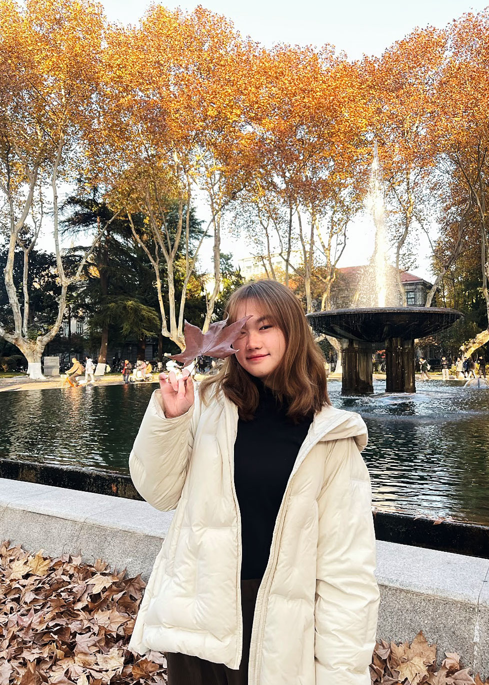在這里的每個季節(jié),我都覺得自己處于最美的畫卷之中。冬日里,當(dāng)梧桐樹的枝干在灰蒙的天空中刻畫出淡淡的輪廓,校園的梧桐大道就像一幅淡淡的水墨畫,孤寂而優(yōu)美。春天來臨時,櫻花與梅花競相開放,梧桐樹也抽出嫩綠的新芽,校園里的同學(xué)們在大草坪上沐浴著溫暖的陽光,生命在這一季萌發(fā)。夏天,隨著蟬聲來到大禮堂前的噴泉,你會看到噴泉的水珠在陽光下跳躍,讓人感覺所有的夢想都在這一刻充滿了無限生機(jī)和可能。到了秋天,校園轉(zhuǎn)瞬間被染上了橙黃的色調(diào),梧桐大道上鋪滿了金黃的落葉,建筑物上映出梧桐的影子,讓作為建筑專業(yè)學(xué)生的我真切體會到了光與影的交織之美。我很難評斷哪一個季節(jié)最為動人:春天的它是充滿活力的,夏天的它是熱情洋溢的,秋天的它是溫暖動人的,而冬天帶來的則是一份沉著冷靜。這一年又一年的四季輪回不僅是自然的更迭,也伴隨著我的成長,成為我人生旅程中不可或缺的一部分。