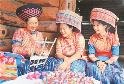 傈僳族婦女在傳習中心內(nèi)制作各種手工制品。王 磊攝