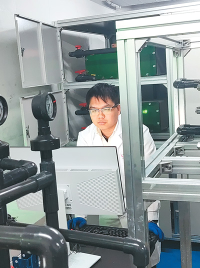 周明月正在進(jìn)行液流電池充放電測(cè)試。