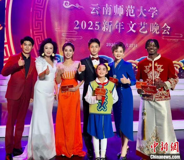 2024年12月,拉希德(右一)主持云南師范大學(xué)2025新年文藝晚會。受訪者 供圖